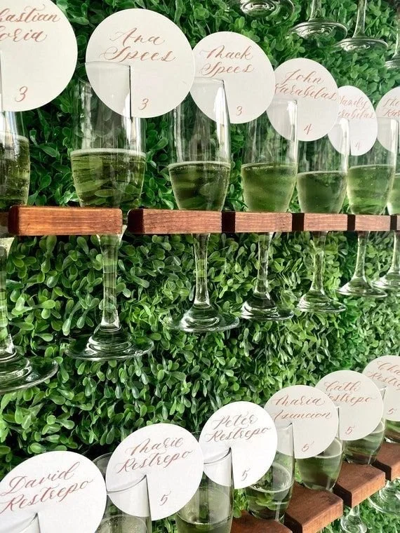 Double up on style and function by turning your welcome drinks into place cards. Attach a tag with each guest’s name and table number to their glass — it’s personalized, polished, and way more fun than a printed chart on a table.